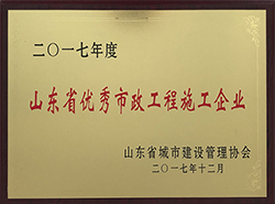 公司被評為“山東省**市政工程施工企業”
